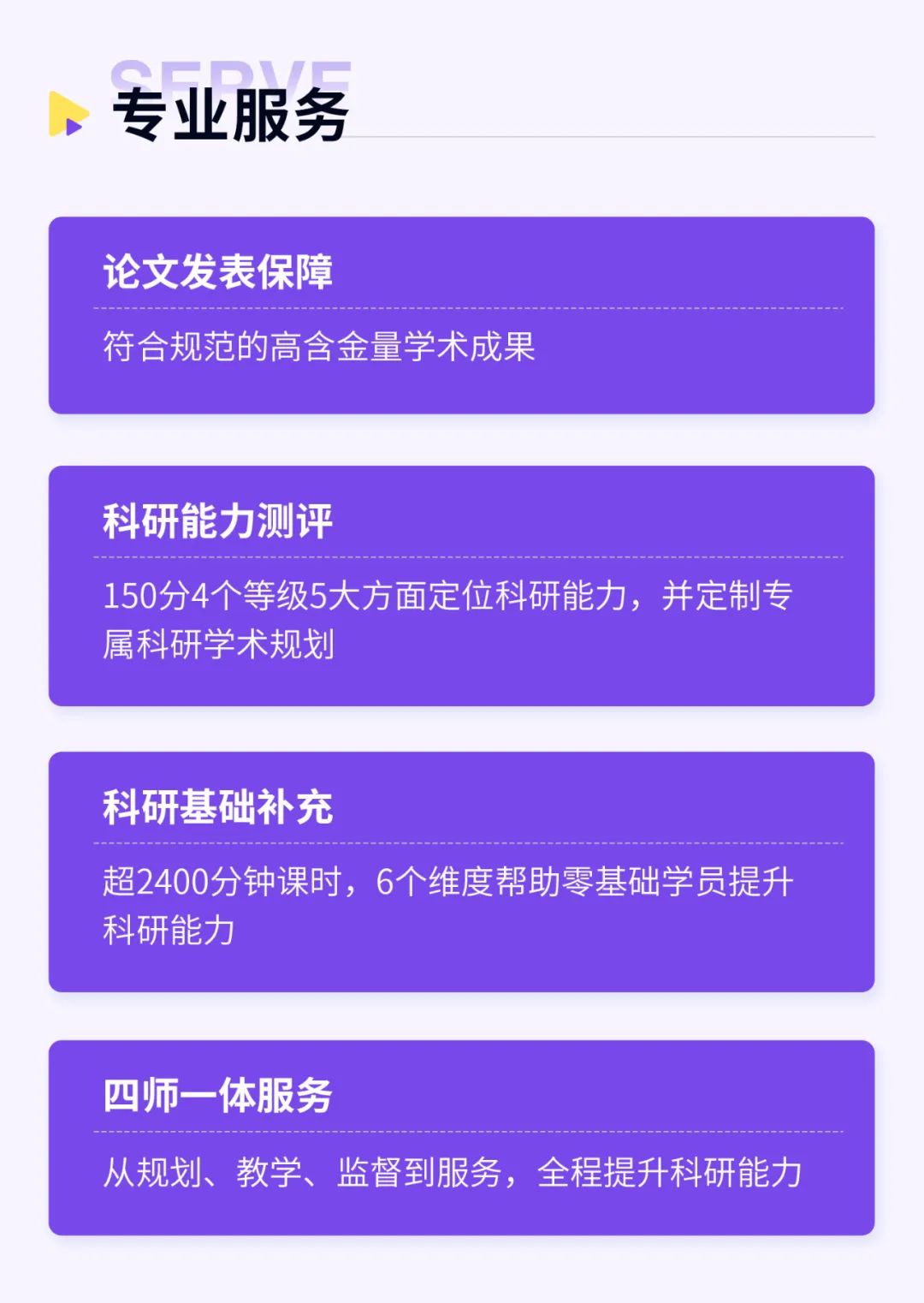 盐趣开设的一对一科研论文产出课程体系,只为让你参与进一次真实且前沿的科研项目,真正提升你的科研能力!项目根据学生研究领域匹配专属导师,制定个性化专属课程,培养学生科研能力、论文写作能力,帮助学员顺利完成论文及成功发表,助力国内外名校申请/硕博毕业/职位晋升。