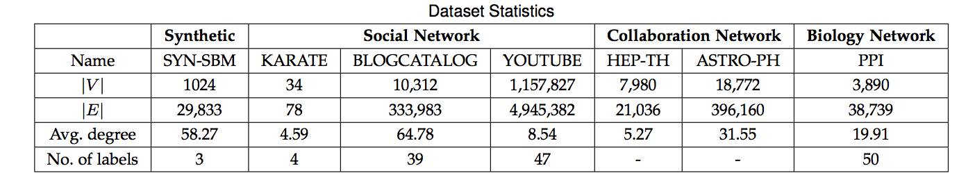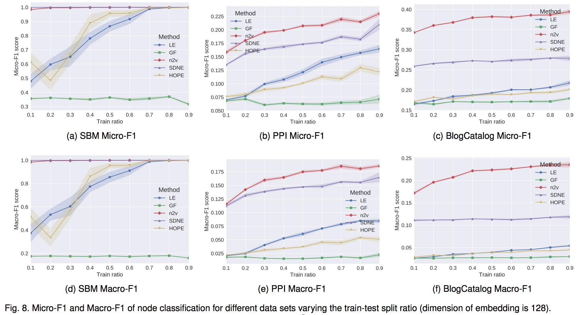 作者在 SBM、PPI 和 BlogCatelog 网络上做了节点分类的实验。如下图: