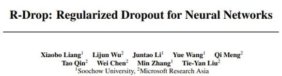 近日,微软亚洲研究院与苏州大学在 Dropout [1] 的基础上提出了进一步的正则方法:Regularized Dropout,简称R-Drop。与传统作用于神经元(Dropout)或者模型参数(DropConnect [2])上的约束方法不同,R-Drop 作用于模型的输出层,弥补了 Dropout 在训练和测试时的不一致性。简单来说就是在每个 mini-batch 中,每个数据样本过两次带有 Dropout 的同一个模型,R-Drop 再使用 KL-divergence 约束两次的输出一致。所以,R-Drop 约束了由于 Dropout 带来的两个随机子模型的输出一致性。