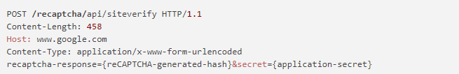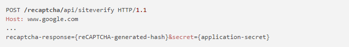 之后,目标访问网站需要调用谷歌的reCAPTCHA API接口,让用户对该API提供的验证作出测试,然后根据该测试响应来验证用户身份。调用谷歌reCAPTCHA API接口过程的POST请求如下: