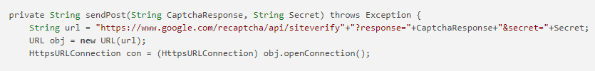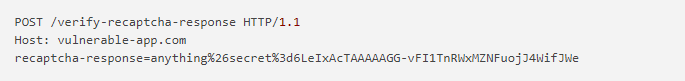 如果目标访问网站可能存在HTTP参数污染,而且其URL链接是在secret参数之前通过添加response参数来构建的,那么这种情况下的 reCAPTCHA 验证方式有可能被绕过。