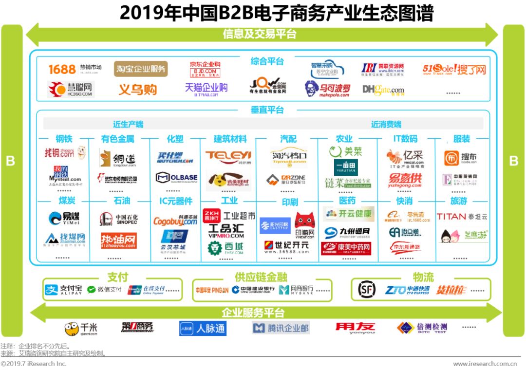 2019年的B2B行业发展迅猛,很多新的模式和需要突破的瓶颈出现,各个赛道将形成新的竞争格局,B2B平台也可能出现分化,由此产生行业新的机会与挑战。艾瑞咨询将持续深入研究B2B行业,聚焦B2B行业的产业链上下游需求及变化、企业竞争壁垒框架建立以及典型企业分析,力图揭示更清晰的投资逻辑,助力资本更好布局B2B行业。