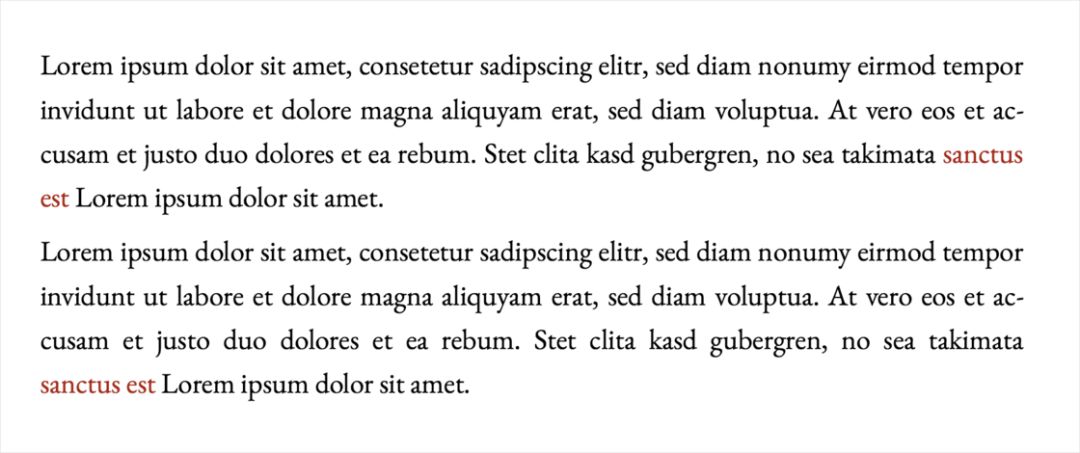 普通空格(上)与不换行空格(下)在两端对齐时的区别(注意红字部分)