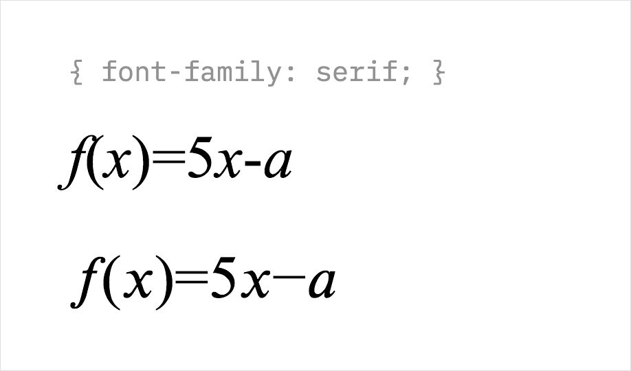 手动输入的「数学符号」和 Unicode 专门指定的数学符号,注意两者在宽度和形态上的区别