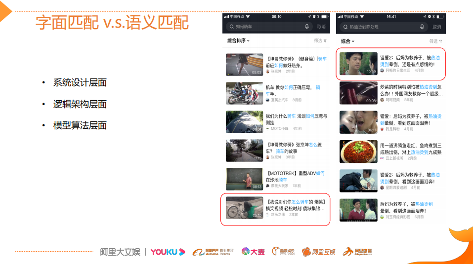 第一个案例用户搜“如何骑车”其实是想找攻略的,图中给出了传统的方法的结果。字面匹配的结果并不是一个攻略,而是一个搞笑的视频。