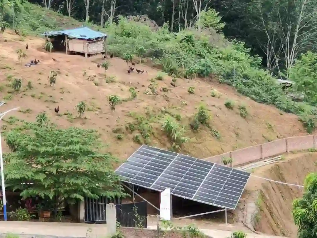 2022年4月,在太古可口可乐的支持下,村子角落的空地上架起了一块更大的光伏板,它有16KW的装机量,能将自然光转化为电能,年发电量能达2万余度。