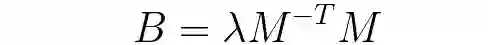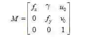 所以一个单应性矩阵H可以提供上述两个约束条件。那么如何利用上述两个约束条件求解内参或者外参呢?我们一步一步来看,由前面可知内参矩阵M:
