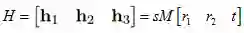 为了利用旋转向量之间的约束关系,我们先将单应性矩阵H化为3个列向量,即H=[h1 h2 h3],则有