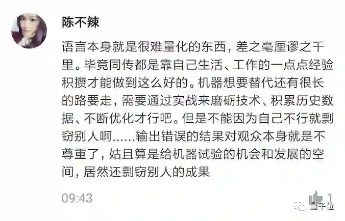 还有人觉得,自己辛辛苦苦学了那么多年的同传,被一个冒充的机器耀武扬威,非常心寒: