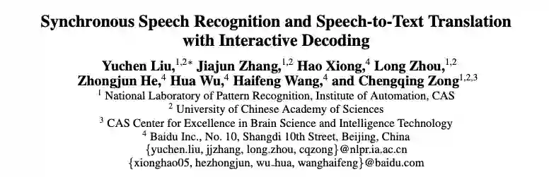 和百度公司合作提出了一种基于交互式解码的同步语音识别与语音翻译模型