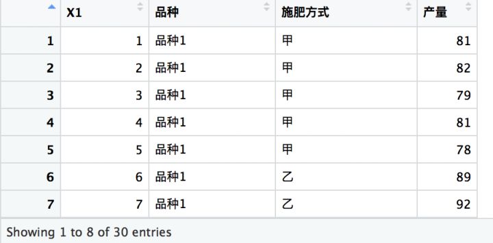 R模拟操作:(研究品种与产量的方差分析)
