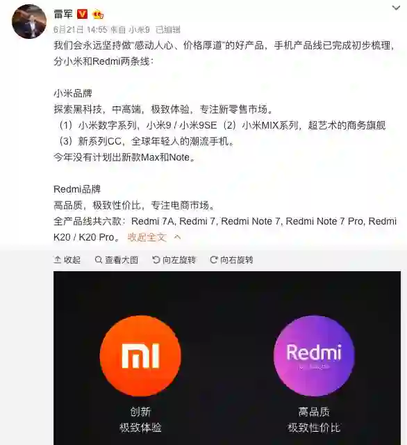 如今,2019 年 6 月,雷军又在微博上直接宣告了小米 Note 系列的死亡。