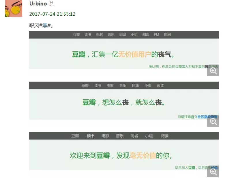 “中文网站圈里面最没价值的两群用户莫过于豆瓣和 AcFun 的用户群。”2017年7月,新浪微博 CEO 王高飞写了这么一句话。虽然只是引用,却被不少豆瓣er穷追猛打。在他们看来,豆瓣用户只是反对实用主义至上的价值观,并非毫无价值。