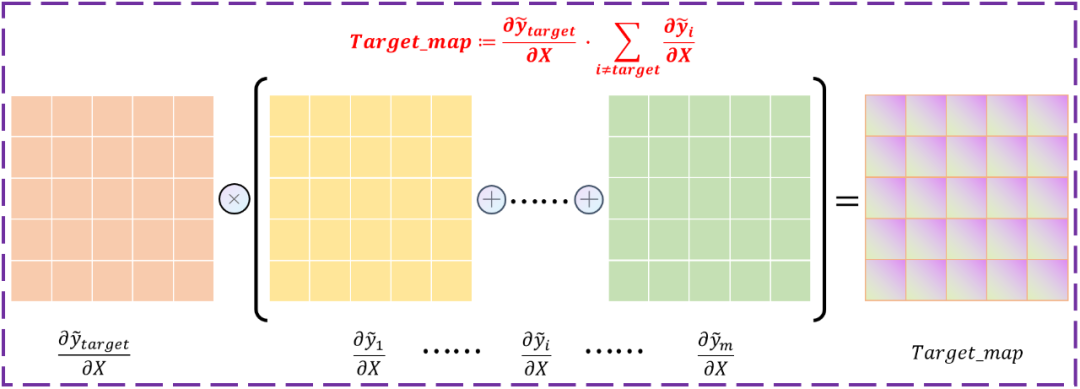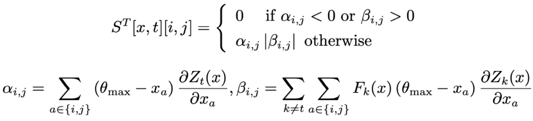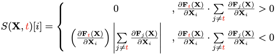 对比 WJSMA 和 JSMA 的算法可知,WJSMA 将神经网络的输出概率作为 Saliency Map 的权重,这样就能够更加合理 对不同类别的 Saliency Map 的信息进行有针对性的整合。论文中作者给出了一个实例(如下蓝色字体所示)来解释具有权重的 WJSMA 的优势。