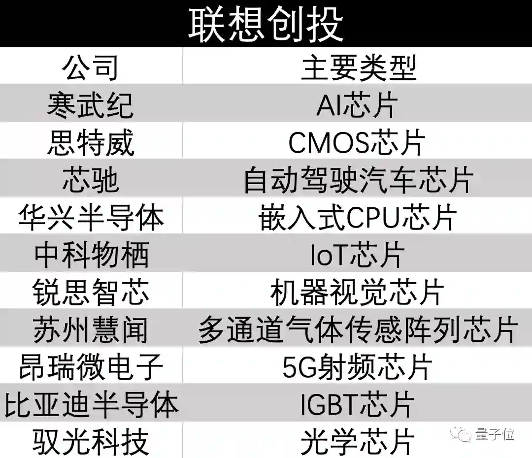 从数据中不难看出,联想所投资公司,芯片种类范围颇广,包括AI、手机、自动驾驶、IoT、5G等等。