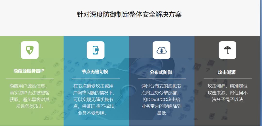 可以无限防护,可以找到攻击来源,通讯加密,方案免费提供,有联系,或者是发邮件索取。今天提供游戏行业云防护解决方案。
