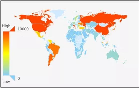 由此可见,公网上开放SSDP服务的终端数量非常庞大,而且分布广泛,为攻击者实施攻击带来便利。