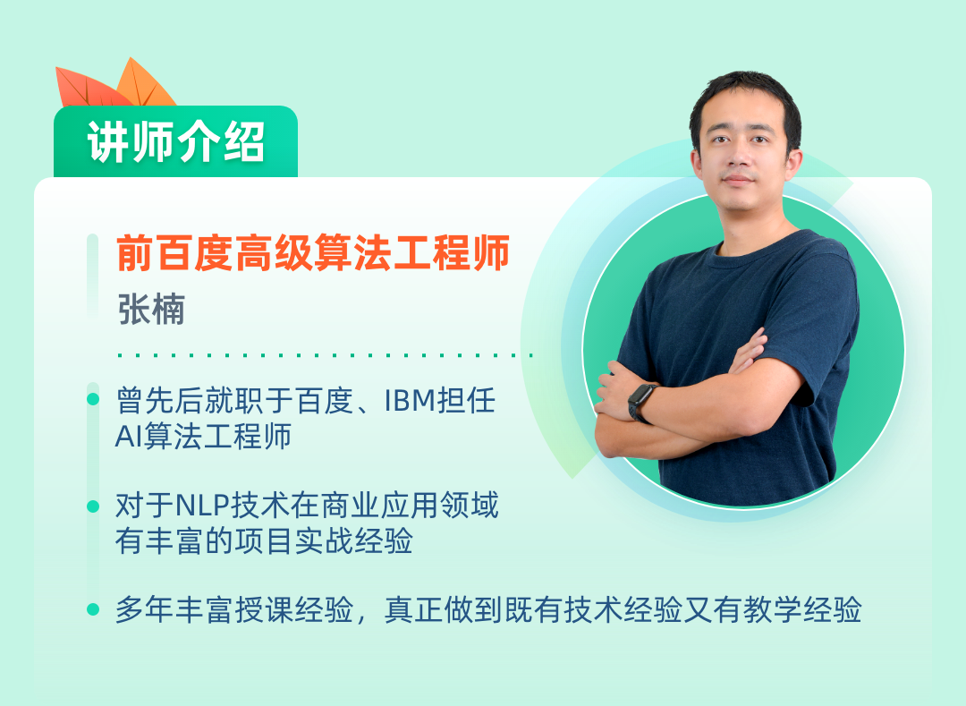 前百度高级算法工程师张楠老师手把手教你学会NLP文本分析,让你3天吃透词向量、Transformer、BERT等重要知识点。