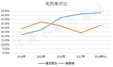 从毛利率看,健友股份逐年上升,海普瑞却在2015年后走下坡路。