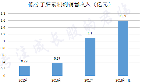 付出终有回报,健友的低分子肝素制剂营收从2017年开始迅猛增长,2018年上半年销售收入达到1.59亿,同比增长454%,销量600万支,同比增长260%。