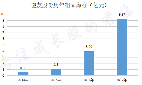 从肝素粗品库存可以看到,健友大肆囤货,2014年库存只有0.53亿,2017年已达9.27亿。