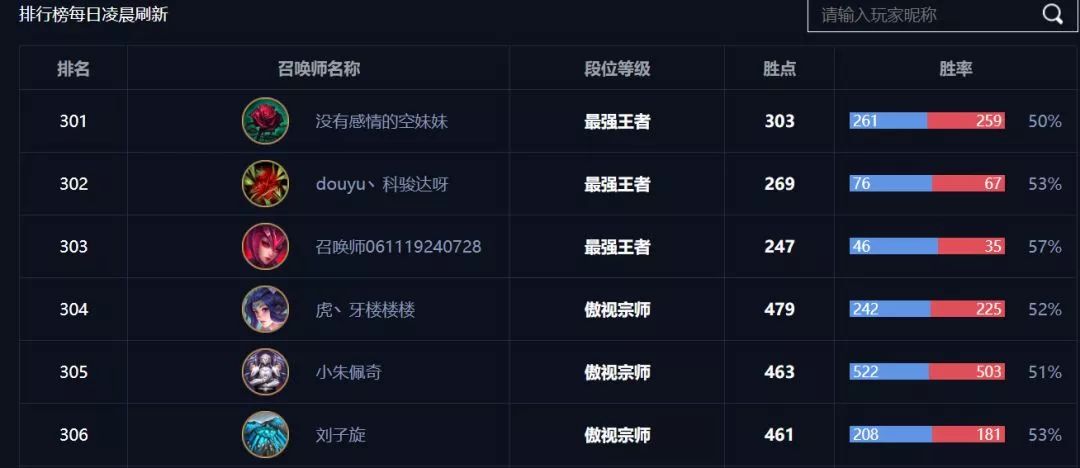 峡谷之巅是《英雄联盟》针对所有高技术玩家开设的一个服务器,普通玩家若想加入,必须先在原本的大区打出相应的成绩才行。峡谷之巅当中最高的段位是“最强王者”,其次就是“傲世宗师”与“超凡大师”。根据《英雄联盟》官网的排名,国内“最强王者”段位仅有303人。