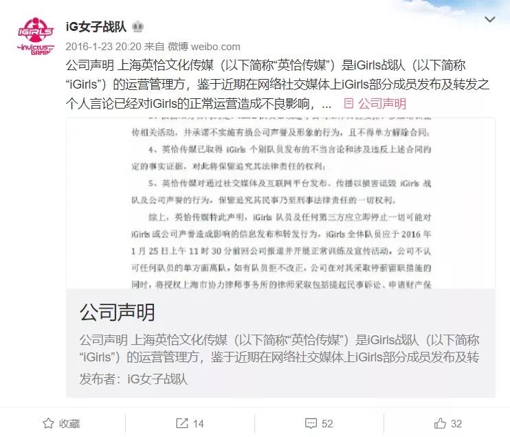 截自微博@IG女子战队