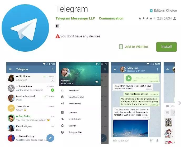 Telegram 是一款拥有 2 亿活跃用户,目前在全球同类 app 中的排行为第 9 位。由于对消息采用了端到端加密,其在俄罗斯和中东都深受欢迎。