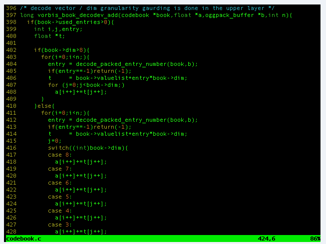 该漏洞的核心是由于407行内部for循环中的数组边界检查不足造成的(上图)。使用精心制作的Vorbis音频文件指定足够大的book-> dim,可以使i大于n,并在408行内部for循环的界限以外访问a []数组。