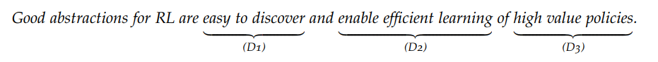 为了论证本论文的思想,作者从三个方面阐述了哪些抽象在RL中有用,并将其研究成果高度概括为如下内容: