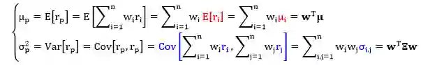 求 rp 的期望和方差得到组合的预期回报 μp 和预期风险 σp