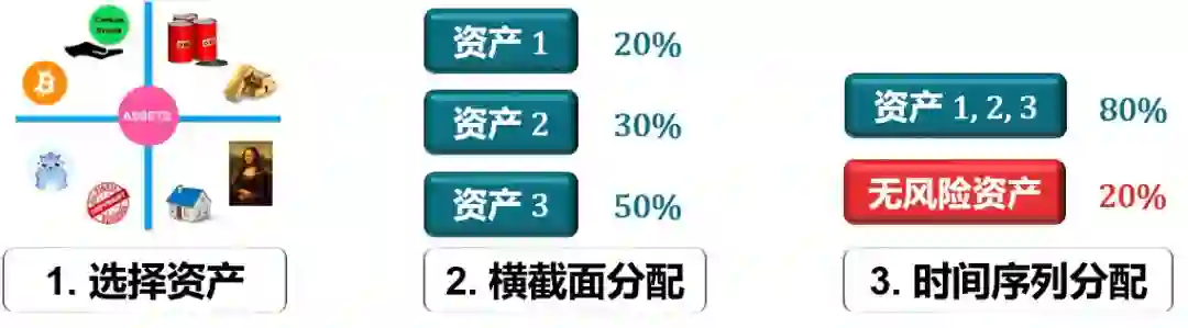 选择资产是个大课题,横截面分配 (cross-sectional accloation) 指的是在组合里给有风险资产 (risky asset) 分配权重,时间序列分配 (time-series allocation) 指的是在有风险组合和无风险资产 (risk-free asset) 上分配权重。本文讲的资产配置是横截面分配。