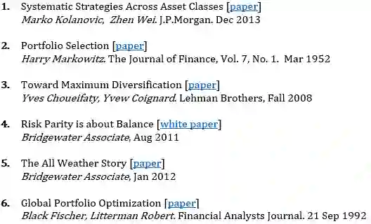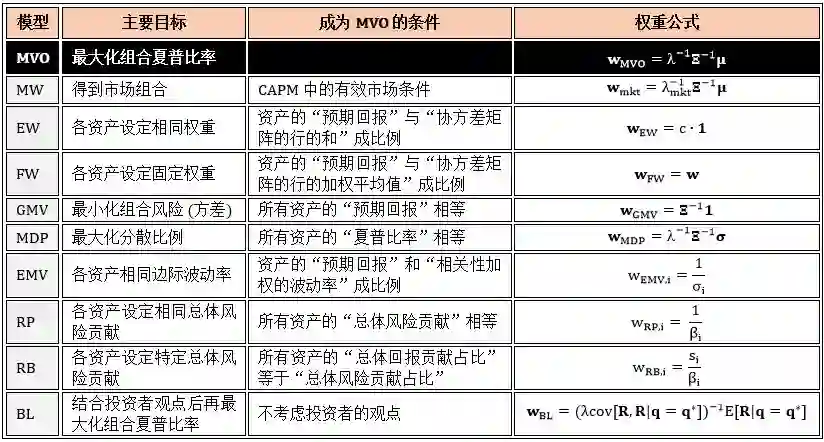 注意:本帖介绍各种模型时没有介绍约束条件,实际构建投资组合时还需要考虑权重上下限、跟踪误差、换仓约束、资产数目等等。