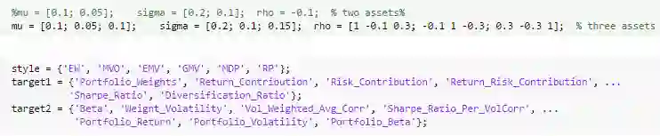 下面的代码可以生成上面双资产和三资产的所有产出,建议读者对着公式看代码。