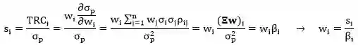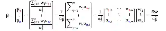 贝塔是用来衡量个别资产相对于整个组合的波动情况。注意力放在第 i 个资产,根据其定义得到