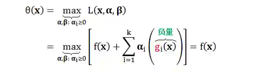 有一个非常有意思的结论就是:无约束最小化 θ(x) 等价于有约束最小化 f(x)。证明一点也不难,如下: