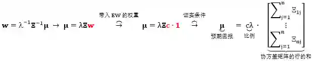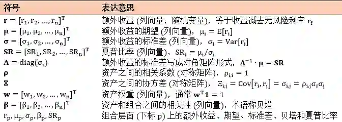 假设组合里包含 n 个资产,其权重为 w1, w2, ..., wn,那么该组合的超额回报 (随机变量) 为