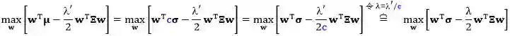 当投资者极度厌恶风险,λ = +∞,效用函数中第一项微不足道,投资者这时最大化负的“期望风险”,即最小化“期望风险”。