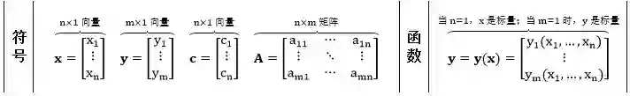 下图首先定义了一些向量和矩阵符号 x, y, c 和 A,一个多变量的向量函数 y(x):