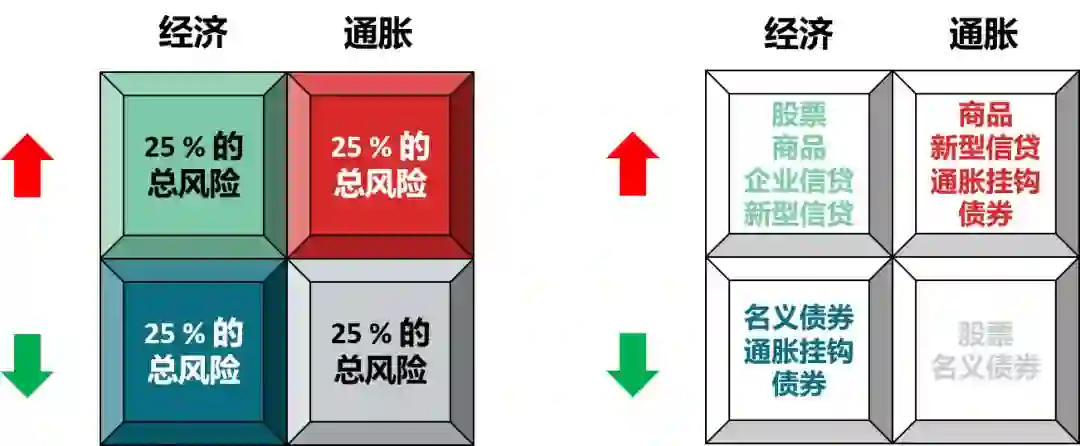 注意:6/3/1 可看成是个合成资产(股票:债券:信贷 = 6:3:1),其下的权重应该按 6/3/1 的比率分配到有效新权重的股票、债券和信贷上。以 EMV 举例 (27% 是合成资产下的权重),
