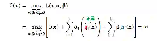 由其定义可知,拉格朗日量是 x, α, β 的函数,α 是和不等式类型的条件 (g) 相乘,而 β 是和等式类型的条件 (h) 相乘。
