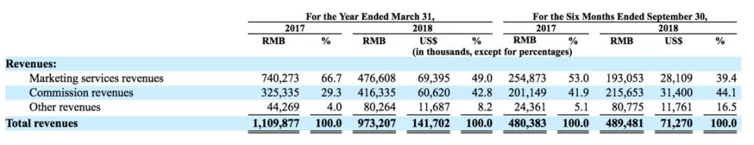 蘑菇街2017财年至2019财年上半年总收入,图片来自招股书