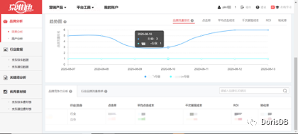 正是由于Doris具有自定义的预计算能力和不俗的现场计算能力,简化了我们的日常工作。以我们为广告主提供的营销工具“行业大盘”为例,如图所示,这种业务场景下,不仅要计算广告主自身的指标数据,还需计算广告主所在类目的指标数据,从而进行对比。