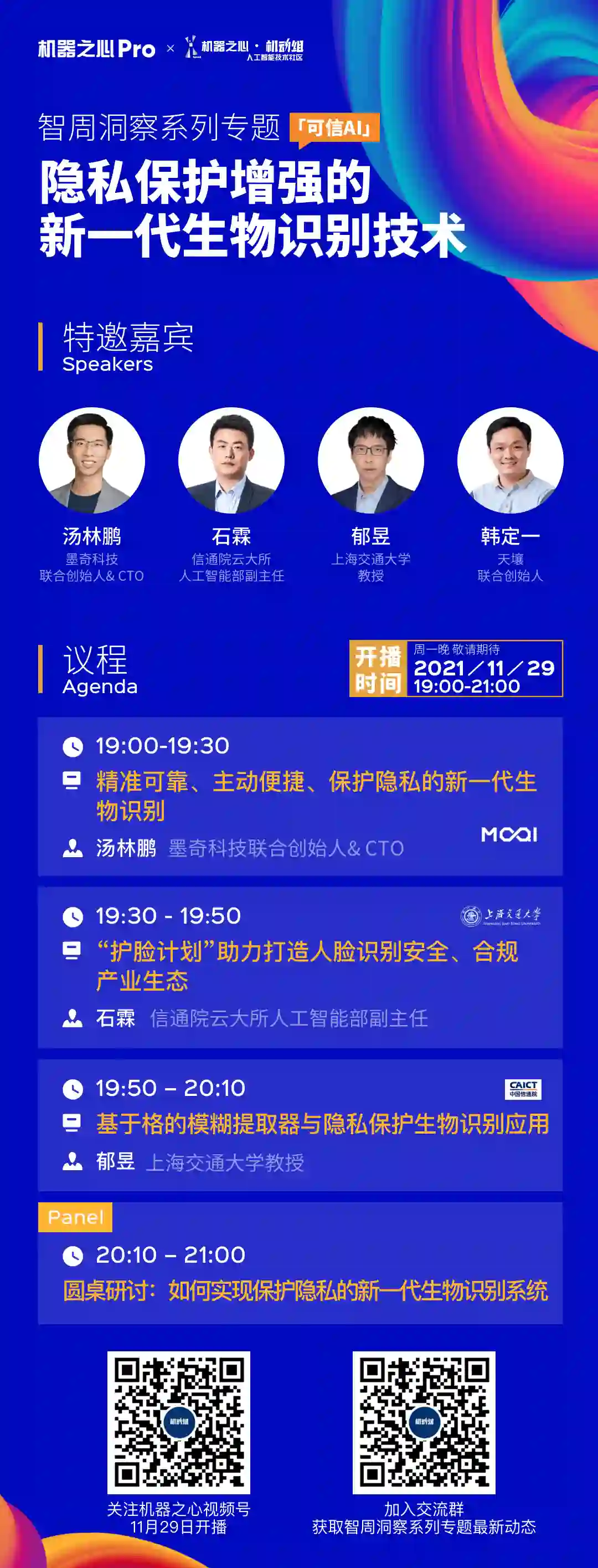 本次分享内容涉及基于格的模糊提取器方法、精准便捷兼容的隐私保护的生物识别技术实现、中国信通院 「护脸计划」 解读、可信生物识别技术升级过程中面对的产业应用挑战等。