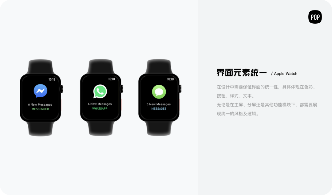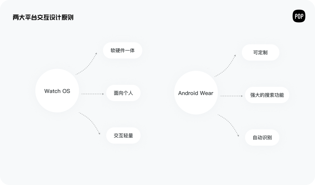 由于智能手表也采用这两大系统设计,所以其设计的出发点和原则比较相近,都是由简单的交互方式及明确的布局构成。