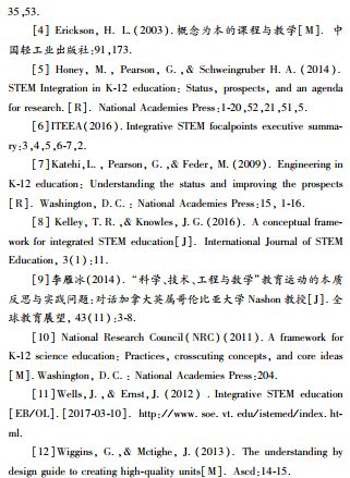 在课程发展史上,分科与综合不是个新鲜的话题。在19世纪末,随着美国学校“课程扩充”运动发展,课程臃肿、传统学科和新学科之间的矛盾迫切需要解决,于是出现了相关课程、融合课程、广域课程、核心课程以及活动课程等体现不同综合程度课程思想的课程形态。从课程发展来看,STEM整合教育是综合课程的有机组成部分,是课程综合化的体现③。今天我们讨论STEM整合教育,也是在应对当前分科教育弊端日益凸显的举措,将物理、化学、生物整合形成的“综合理科”,就是性质相近学科层面的整合。20世纪80年代出现的STS教育,则是从人文、自然和社会学科层面的整合。从这个意义上来讲,STEM整合教育是综合理科、STS的延伸,强调使分割的STEM四个学科的各要素形成有机联系,并通过整合发展科技教育的社会责任感,让学生认识科学技术的社会价值、社会功能以及伦理意义。