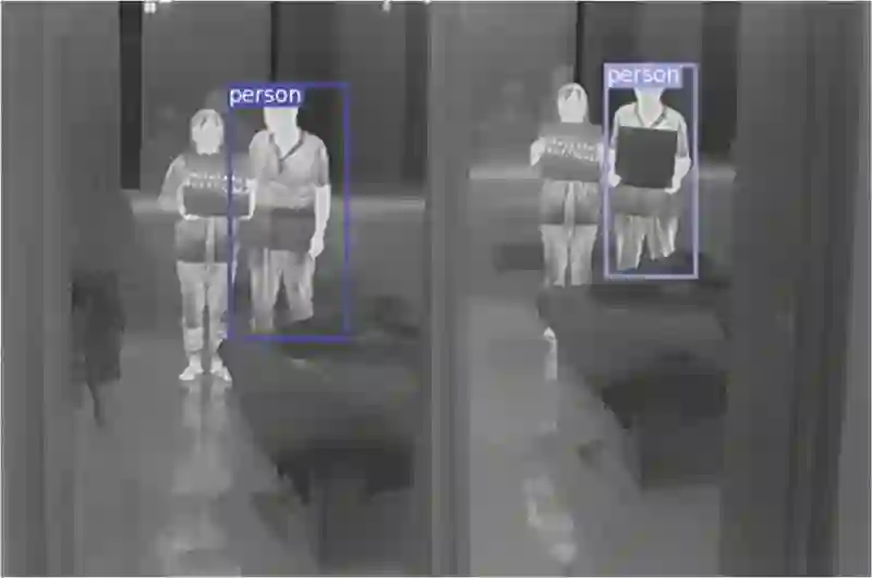 2. 红外成像具有一定的「透视」特性,即使人体被一些衣物遮挡,但是热辐射依然可以透过衣物被接收器感知到,所以可以透过遮挡进行成像。