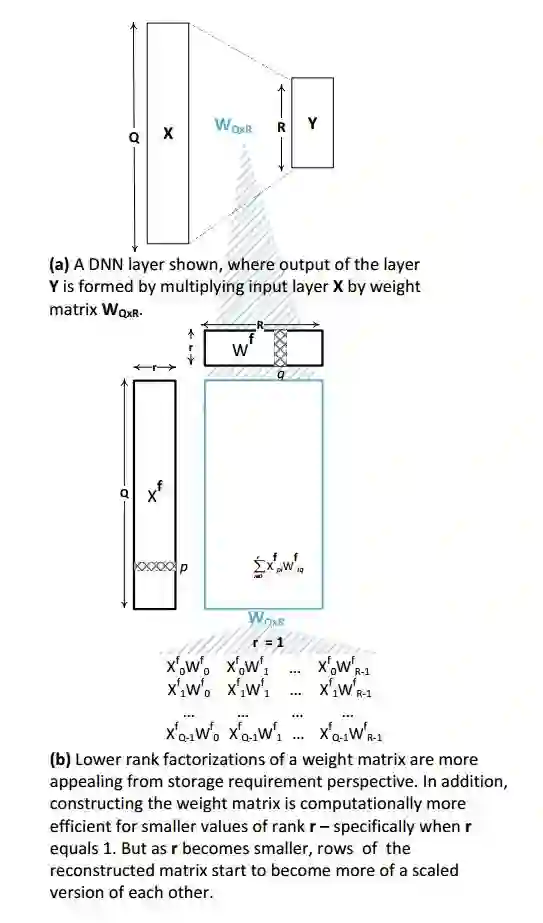 图 1. 权重矩阵的低秩分解:随着 r 变小,重构矩阵的行和列对应地实现缩放。