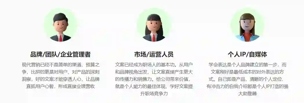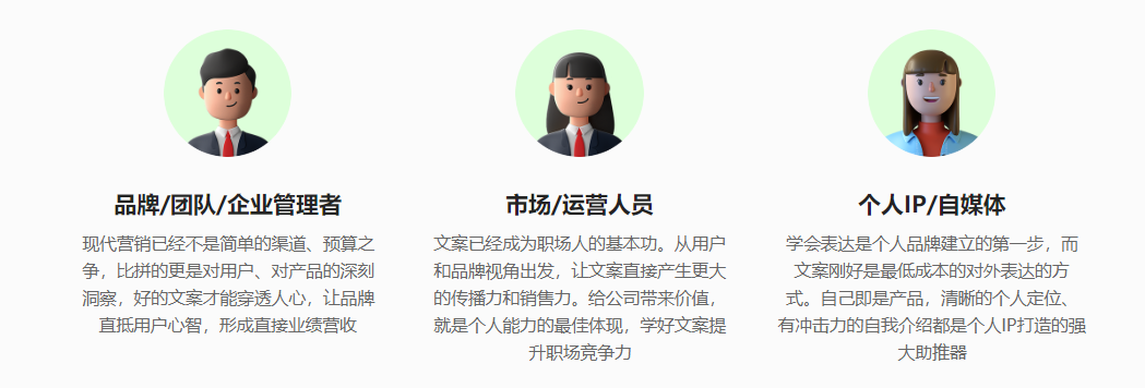 就不多说啦,前面已经做过介绍的,我们的20余年文案经验,操盘过100+个品牌案例,真正了解品牌和学员困境的资深导师亲自带教,能给你更有专业性的指导,回答百度不到的问题。