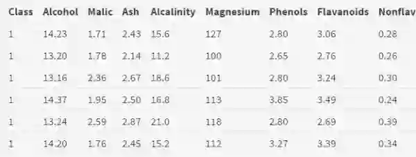 因为我们要找一个数据集进行聚类分析,所以不需要第一列的种类标签信息,因此去掉第一列。